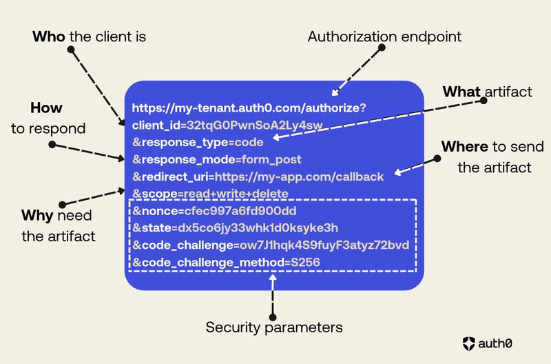 It all starts when a client application redirects a user's browser to the authorization server to begin the authorization process. The authorization request is usually a GET HTTP request sent to the authorization endpoint of the authorization server, although it may be a POST HTTP request too.